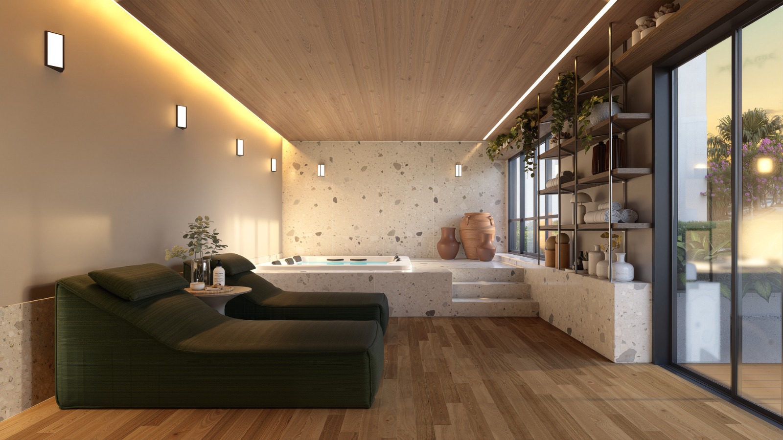 Entre os diferenciais, o condomínio reúne mais de 30 itens de lazer distribuídos em uma área de 9.184 m². Estão previstos espaços como piscina de 460 m² com prainha, piscina infantil, academia, spa, boliche, mini golf, quadras esportivas, coworking, salões de festas, áreas gourmet, pet care, brinquedoteca e espaço de jogos.